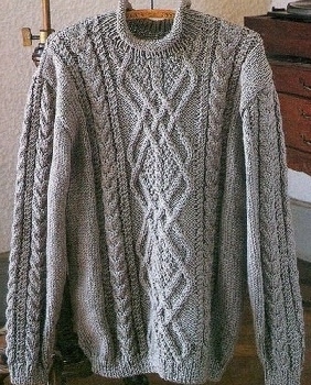 Я вообще в последнее время люблю вязать только лицевой ( чулочной) или платочной вязкой, вы на меня поэтому не обращайте внимания и вяжите красивыми узорами. А я глядя на вас тоже ими начну может быть :-) Я ведь перед серо-голубым джемпером вязала на себя кофту из тёмно-сине-фиолетовой Москвички, чувствую не хватит мне там пряжи, дай думаю кофту сыну из Москвички свяжу, а оставшуюся от неё светлую пряжу пущу на свою кофту, но чувствую что и тут не хватит ))))