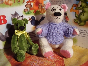 Lucky Dog Опубликовано 27 ноября, 2008 Поделиться #10 Опубликовано 27 ноября, 2008 Потрясающий ля-муууур! Я разгребла почту и наконец отрыла присланную еще в июле инфо по твоему мишке Маше. Как пишет профи, опираясь на твои небогатые в то время фото и мои путаные пояснения, твоя Манюня , скорее всего, германская реплика ( но не исключено, что и не реплика, а настоящая) мишки от Steiff конца 50-х годов.А мож даже она из одной какой-то маленькой и редкой серии Steiff михасиков очень ранних пятидесятых, чтоб точнее классифицировать экспертше надо больше инфо.Одежка, если по Steiff, должна была быть либо просто бант, либо суконный короткий жилет и опять же бант. Этот брэнд не особо много на своих мишек надевал.Ориентировочная стоимость(value), учитывая хорошее состояние игрушки, 44-45 британских фунтов, если реплика, и ок. 75 фунтиков - если настоящая.Привет раритетной Манюне от моего любимого новодела! Лаки, спасибо огромное за информацию о Манюне! Изготовлю ей огромный бант и суконный (что назовем суконкой) жилет!Кошкодуэту огромный привет! (я своих кошек - Белку и Рысю - "кошкозайцами" зову). Мой дуэт вашему тоже низко кланяется! Не спеши, давай бум придерживаться аутентичности, как профи велят. А тогда бант должен быть небольшой, из шелковой атласной ленты(??? чего это??? но по переводу - так) в тон или в контраст жилетке.Допускаются полосатые банты для каких-то там особенных серий мишек.Бант несъемный, завязан и после зашит.А жилетка, как я понимаю, валяная!!!?????? должна быть.В тему! Так-так. А какого цвета жилетка под контрастный бант? А какого кроя валяная жилетка? - Без швов?:) Жилеты рекомендованы в коричнево-красной части спектра или оч. темно зеленый. Конечно , простейшие, шитые. Я думаю, отлично подойдет акриловый префелт, который не требует никакой обработки края, и пошив "Боковые швы+ плечи".Насчет бантов других подробностей нет. Понял, спасибо за руководство по аутентичной одежке! Надо соответствовать! А жилет - до попы? Лен, какое руководство? Читаю- переписываю, чего знатоки понаписали.И не поленились, подробненько, видно, увлеченные они мишками всерьез. И надолго - у нее стаж лет тридцать.Жилет - короткий, она когда-то, когда я к выставке своих мишек готовила, мне объясняла, что , когда игрушка сидит - жилет д.б. до поверхности, на которой она сидит.От так, целая наука. Все реки текут в море, но море не переполняется... Ссылка на сообщение Поделиться на другие сайты Поделиться