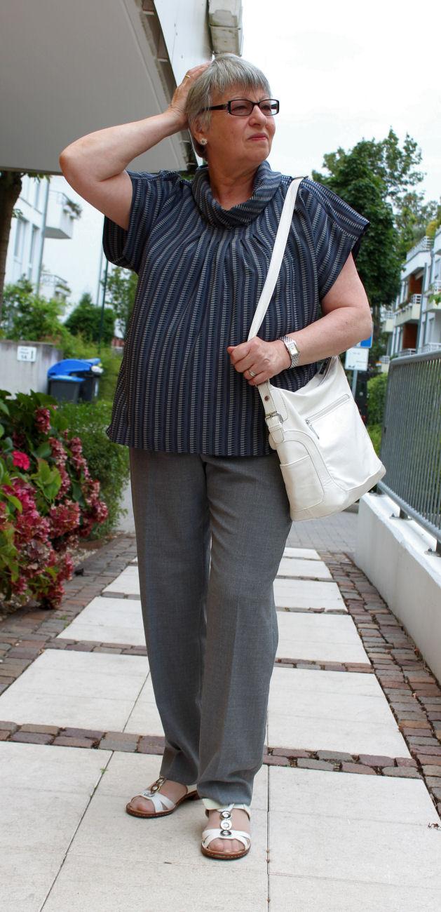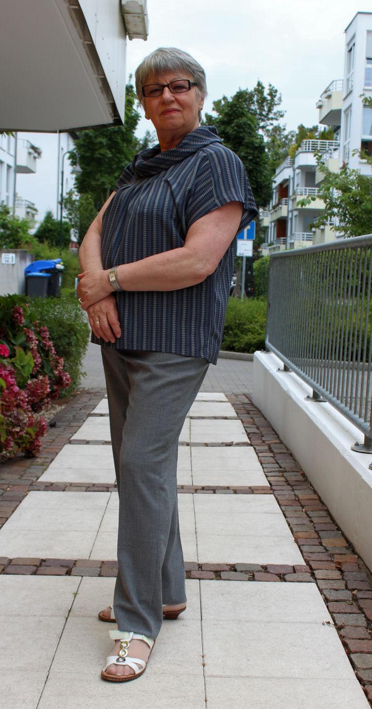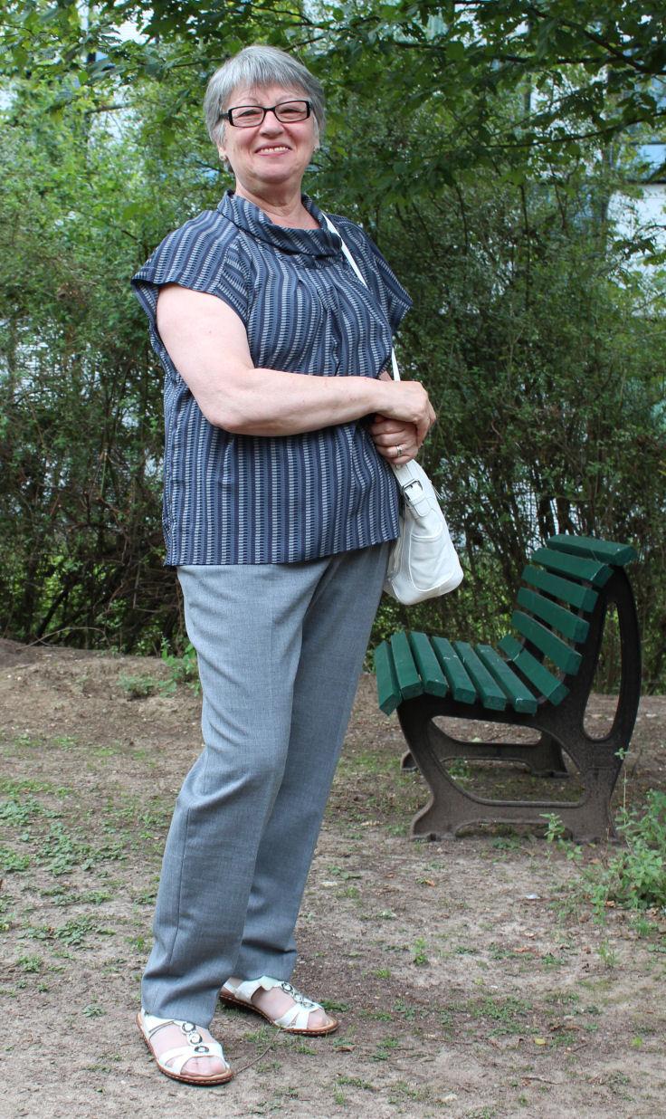 брюки сели с маленькими корректировками на сложную фогуру мамы(см. ниже) превоcxодно. а вот блузка это было что-то...