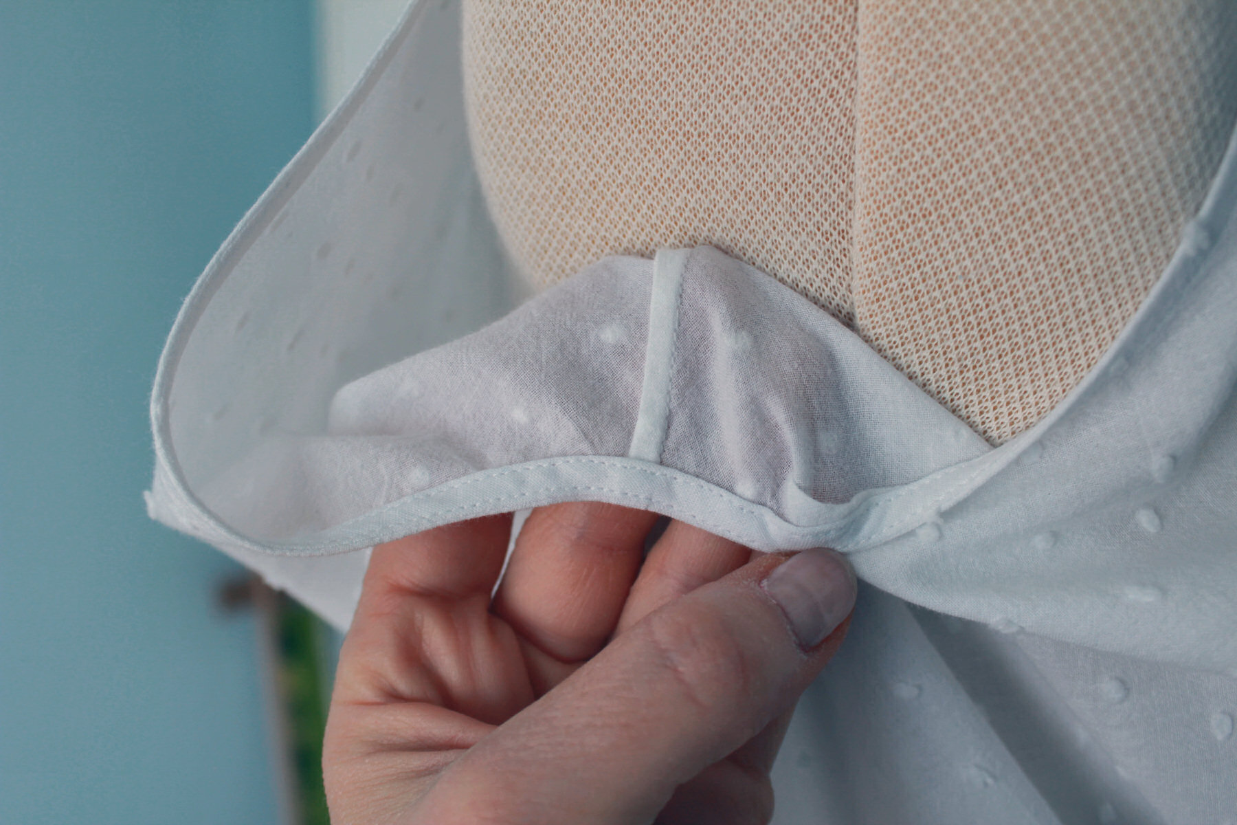 долго думала как совместить косой в запах вырез спинки, который еще и с напуском, но без подклада.мозги вынесло...........