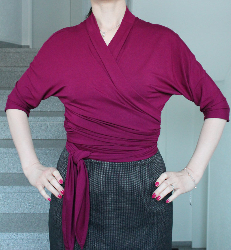 тем более, учитывая, что она с запахом и это всё обвязывается вокруг талии и на узел, машинная строчка- натяжения вряд ли выдержит- а видимых швов (если уж еластичным) я делать не хотела, чтобы не портить лицо...