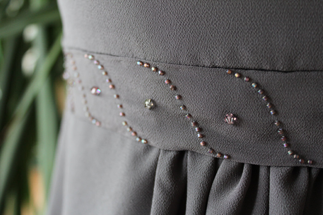 по модели полагалась сатиновая или репсовая лента под грудь- но такого цвета в продаже просто днём с огнём не сыщешь.