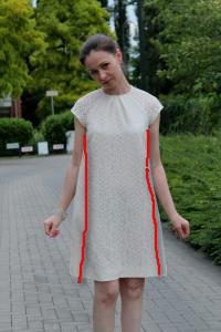 Юль, попробуй заложить складки, как Брина писала (на фото прям видно куда их заложить - от бедра и не доходя до центра груди примерно 1 см) от этого силует не пострадает, а возможно ты будешь чувствовать себя комфортнее. Себе шила платье тоже А-силуэта, без выточек чувствовала себя как в мешке, когда сделала - платье в фавориты выбилось, теперь ношу и радуюсь, причем силуэт сохранился. (правда пришлось делать не по технологии - на такую целую вытачку естественно ткани не хватало, пришлось срезать излишки оверлоком) И смайлик: тссс - никому не говорите)))