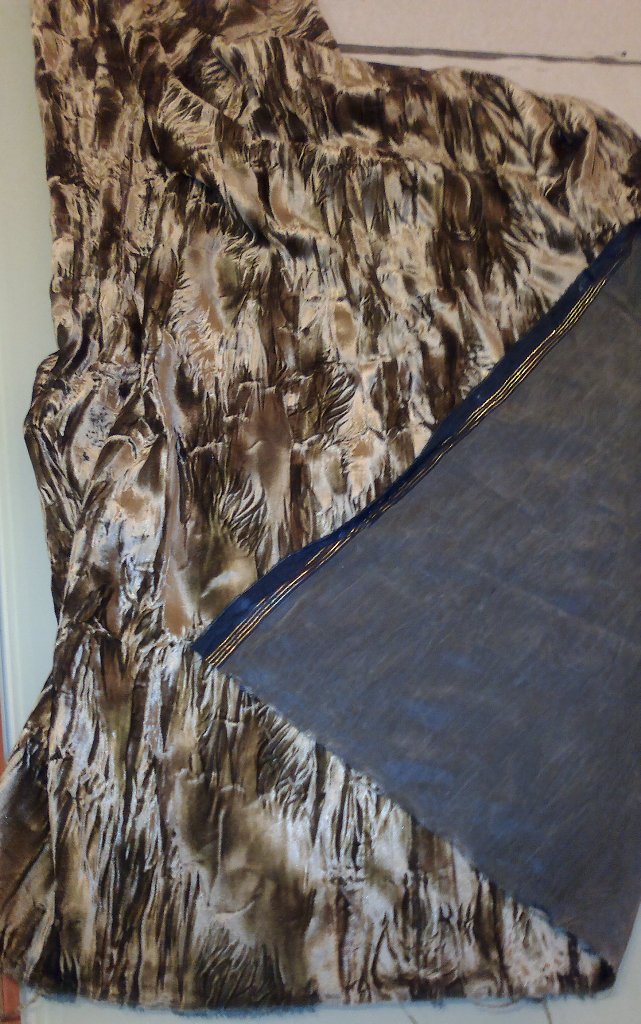Dikiy Korov Опубликовано 16 августа, 2012 Поделиться #35 Опубликовано 16 августа, 2012 Уважаемые мастерицы, Я продолжаю долго и упорно идти к намеченной цели. Скачала выкройку косухи, предложенную вами, сделала лекала, сшила пробник. Он оказался велик. Уточнила все лекала на размер меньше. Второй пробник шить не стала, примерила сами выкройки на муже. Вроде то, что нужно.На прошлой неделе купила ткань и часть отделки. Себе - розовый креп сатин на нижнюю юбку, черную жесткую сетку и черную сетку в мушку на хвост и мягкую черную сетку на верхнюю юбку и рукава.С тканью для мужского жилета случилась неприятность. Скрепя сердце я купила умопомрачительной красоты бархат стоимостью около 2500 р. за метр. Благо, что была скидка на эту ткань 50%. Купила 1 метр, ширина 150. Вчера разложила лекала - все помещается, может даже на галстук цельнокроеный останется. Проблема в том, как декатировать этот бархат? Он не стрейч, вроде по типу крэш бархата, скорее всего 100% вискоза, но точно не помню. Самое главное ворс у него с эффектом заглаживания, на фото это видно. Пока просто повесила ткань, чтобы более ли менее загибы магазинные разгладить. Что дальше делать ума не приложу. Прошу срочной помощи. И, кстати, хотелось бы узнать ваше мнение, подходит ли эта ткань на костюм. Ссылка на сообщение Поделиться на другие сайты Поделиться
