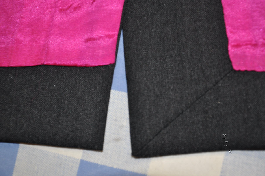 какой шикарный цвет подкладки и какие уголочки у подгибки-ах!