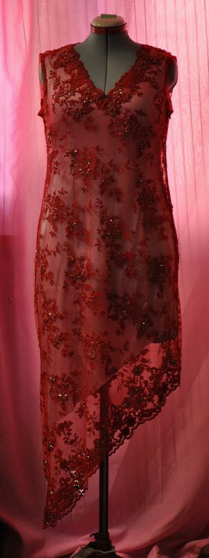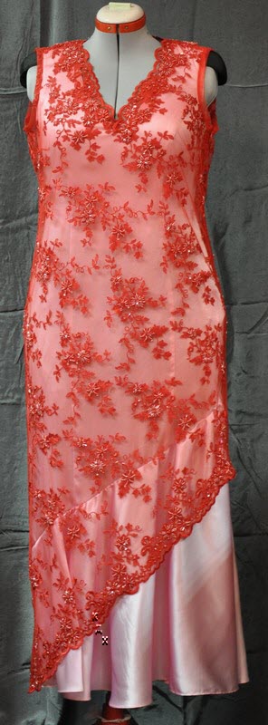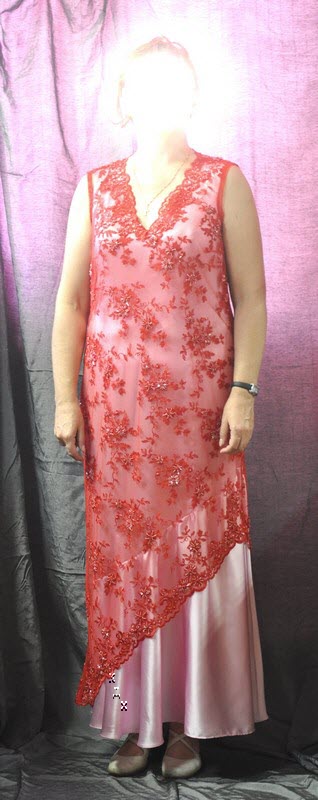 Это платье шили к торжественному случаю. Чехол из шелка со стрейчем, верх - кружевная туника, расшитая бисером.
