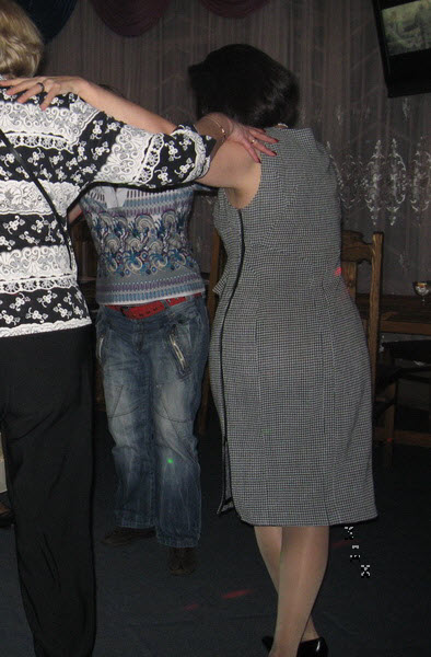 Если еще внимательнее посмотреть,то можно увидеть сверху выше талии небольшую складку, очень спешила на юбилей, в честь которого шился наряд и хотелось сфотографироваться по горячим следам, не одернула юбку, а фотограф, он же ничего не понимает в нашем деле.