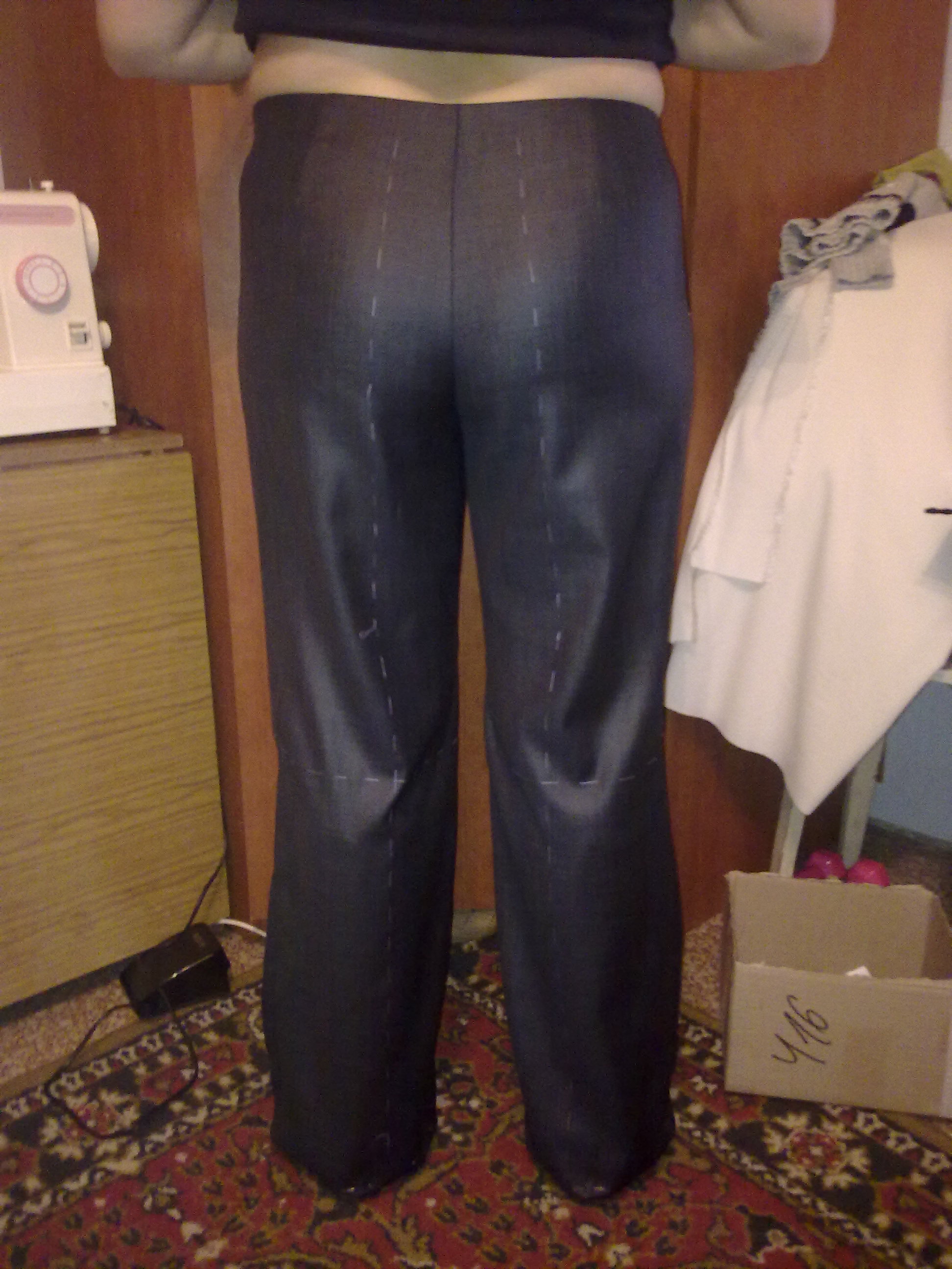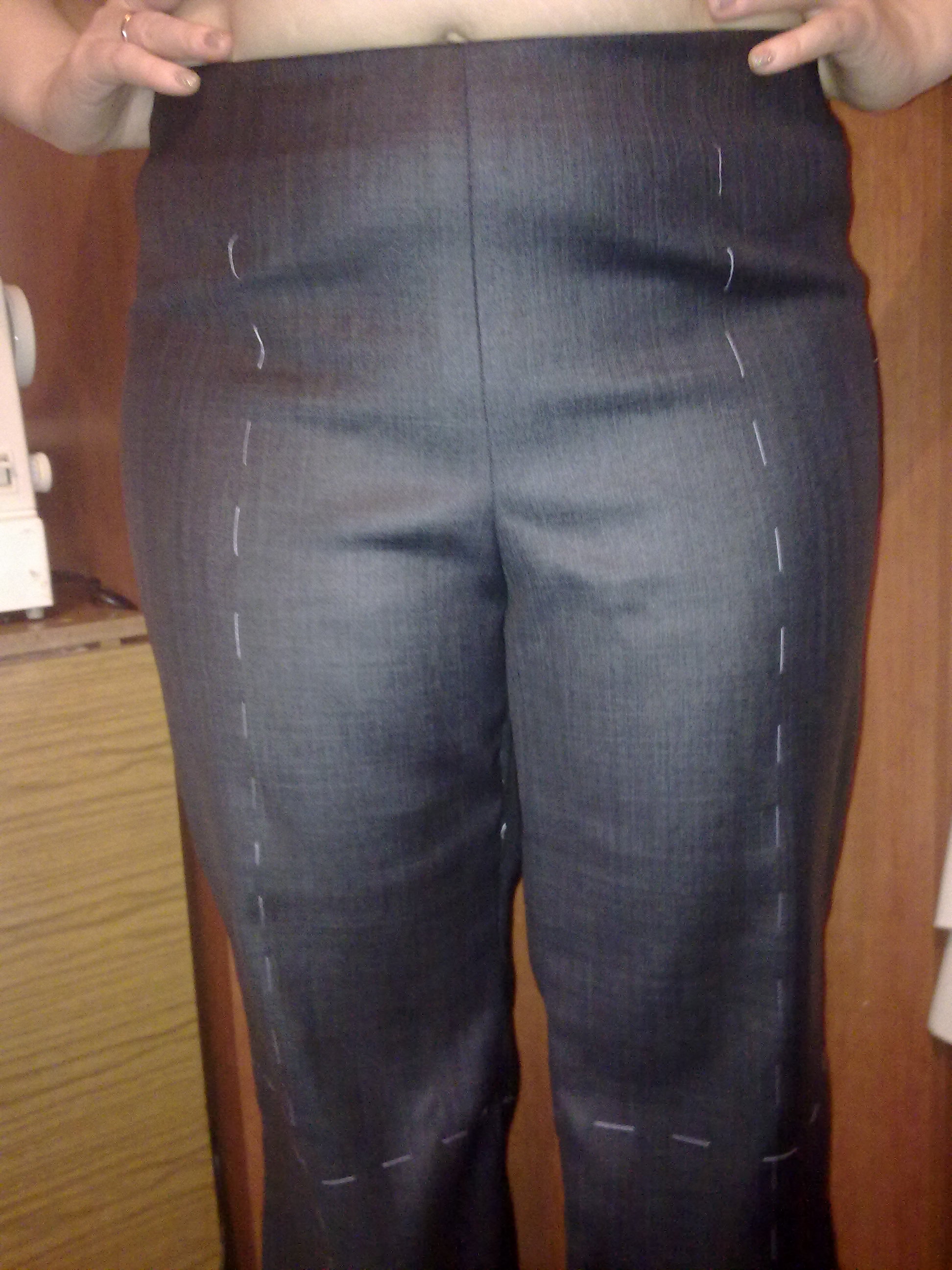 galaSM Опубликовано 30 января, 2011 Автор Поделиться #2 Опубликовано 30 января, 2011 (изменено) Вот мои первые похвастушки и первые в жизни загруженные на сайт картинки. Шью брюки, выкройка из бурды. Очень не нравиться как смотрятся спереди. У меня небольшой животик и под ним прослеживается пустота и сборит ткань. Перечитала кучу советов и здесь на сайте и на других сайтах. Спросила у портнихи, переделала как она советовала. Всё равно смотрится плохо. Терминологии портных знаю плохо, могу судить только нравится или нет. На данный момент - нет. На фото сзади видно тоже, по моему, какую- то слабину? Думаю, если загладить классические стрелки, может быть вид изменится в лучшую сторону. Стрелки можно заглаживать и на готовом изделии, читала на сайтах. Изменено 30 января, 2011 пользователем galaSM Ссылка на сообщение Поделиться на другие сайты Поделиться