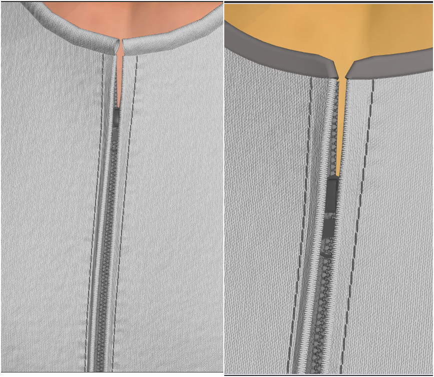 Новую молнию пришить впотай оказалось на много сложнее чем по старинке. Надо играться со слоями, и совсем не возможно для анимации.