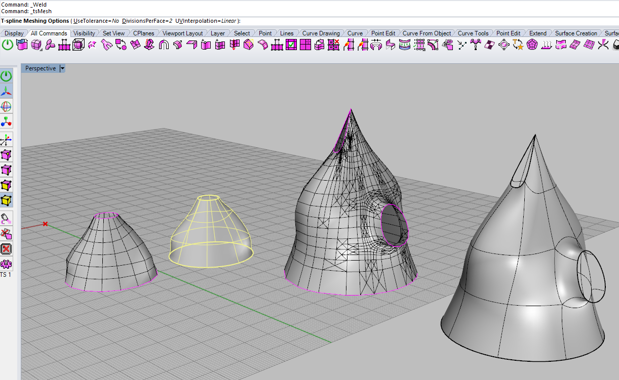 Согласна. t-splines делает более плавные сопряжения - для этого на стыках как бы вводит дополнительные грани.Получается более сложная сеть.