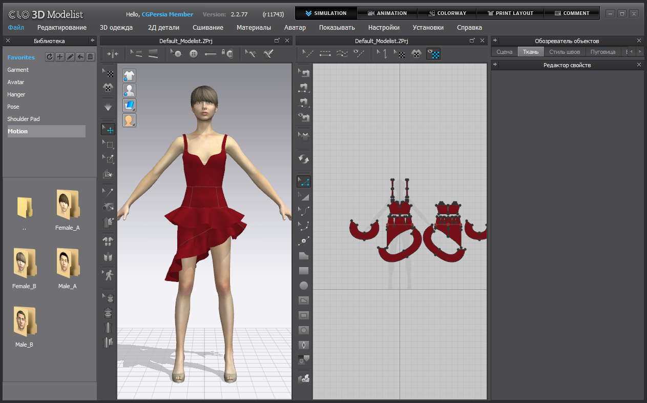 Чтобы костюм выглядел как в жизни, его и собирать надо как в жизни - жесткие дублирующие прокладки в нужных местах, посадки, настройки угла шва и высокая плотность сетки. Выберите шов и в редакторе свойств измените угол.
