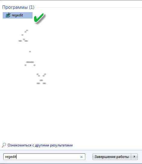 2. В меню пуск в строке поиск набрать regedit