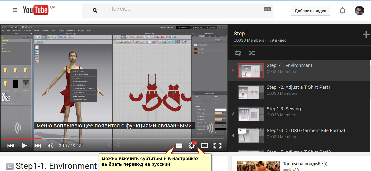 В прилагаемом файле вы найдете ссылку, по которой вы сможете посмотреть (или скачать себе на комп и посмотреть) видеоуроки к программе Кло3Д версии 1.4 (весна 2014г) на английском языке.