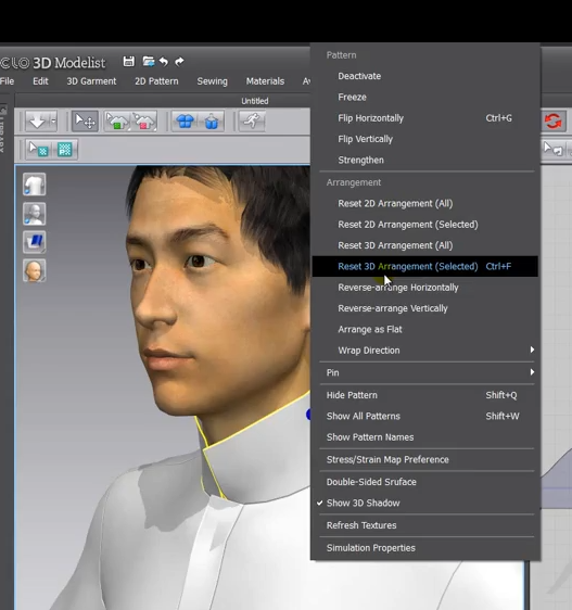 Потом выбирается один воротник и возвращается в несшитое состояние (на скрине видно, какая кнопочка нажимается)