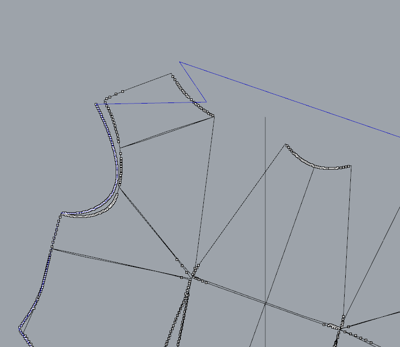 В чём может быть причина? При импорте в Рино приходят лекала, не соответствующие лекалам в Кло. Синяя линия делает неожиданный зиг заг. Таких мест несколько.