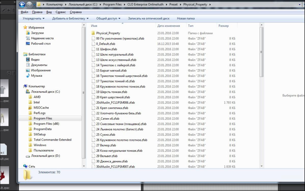 Если у вас установлено несколько версий программ, то папок со свойствами тканей будет несколько. Если ткани у вас загружены в одну версию, в другой они не будут видны, нужно дублировать в папку соответствующей версии. (судя по скрину, вроде у вас правильно загружено, почему не видно в программе - не знаю) Изменено пользователем Natamoda