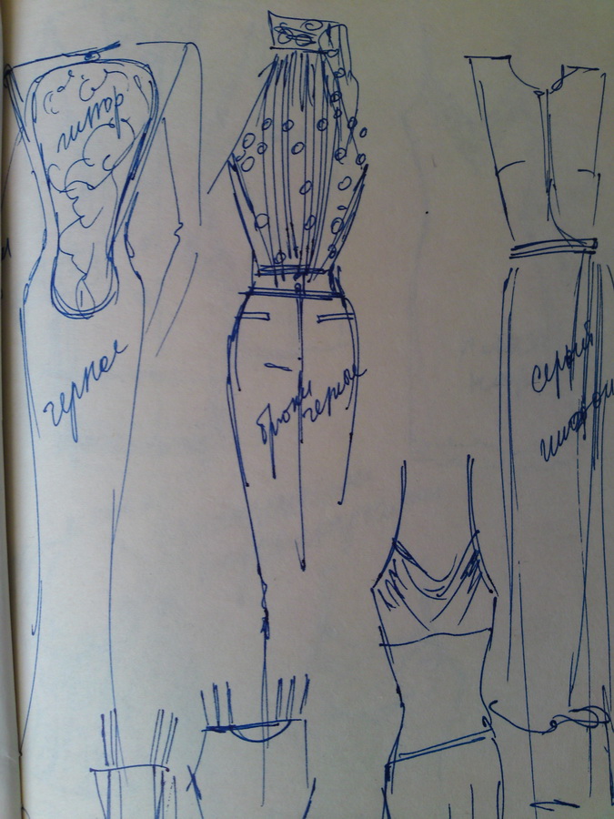 и немного незаконченных эскизов блузок в карандаше: