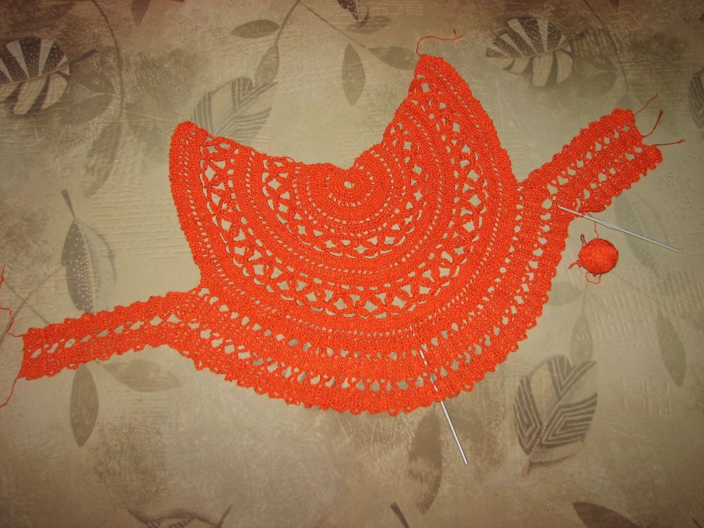 Алён4чик Опубликовано 21 июля, 2012 Поделиться #292 Опубликовано 21 июля, 2012 (изменено) Bth, красивое платье, отличная работа! Очень понравилось оформление выреза... ... я тоже с летней работой... правда, если по-честному, то это старая работа... (я на время забросила крючки-спицы, ударилась в шитье :)) т.к. что-то стало получаться и хочется закрепить эффект :))Топ под названием "Оранжевое настроение", даже участвовала с ним в конкурсе, который проводился на Нижегородском сайте (сайт нашей Ксюльки) ... и фотография из раздела "рабочие материалы"... нитки - хлопок с добавлением вискозы, крючок, вроде бы №2... впервые попробовала вязать брюггское кружево, витые столбики в стиле "рококо" (по-другому - "почтовые"столбики, если я ничего не перепутала) а еще попробовала связать шнур-гусеничка для завязок; вырез обвязан стеклярусом (на солнышке здорово поблескивает, на фото, к сожалению, не видно. К топу смастерила браслет - готовая деревянная заготовка, я же опробовала технику "декупаж" (на третьем фото немножко виден этот браслет :) он оказался довольно -таки громоздким, что для меня - не очень-то удобно... поэтому ношу редко :)... оригинал - Изменено 21 июля, 2012 пользователем Алён4чик Мой никнейм - нелепая случайность. Я - Алёна :) Моя детская тема. Ссылка на сообщение Поделиться на другие сайты Поделиться