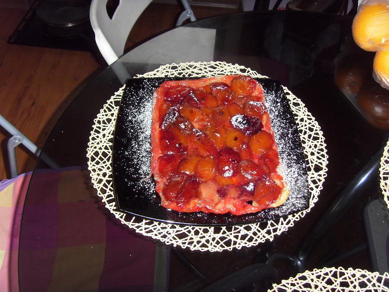 VeraPravda Опубликовано 12 октября, 2014 Поделиться #67 Опубликовано 12 октября, 2014 французский десерт-пирог тарт татен со сливой. нужна форма в которой можно жарить на плите и в духовке. растопить на форме масло сливочным (небольшой кусочек). Добавить сахарный песок (я кладу мало - 3 столовых ложки) и помешивая немного карамелизировать, добавить половинки слив, выложить их красиво на форму. рядами или кругами (в зависимости от формы). я добавила еще цедры апельсина, карамелизировать это минут 10, на небольшом огне, чтобы лишняя влага сливы ушла. за это время раскатать бездрожжевое слоеное тесто. размер должен быть как форма и припуски см 1-2 по краям. листом раскатанного теста накрыть в форме начинку, не дожидаясь пока она остынет, и аккуратно подвернуть внутрь все припуски по периметру формы. смазать желтком. этот пирог выпекается тестом вверх, а съедается, наоборот-начинкой сверху. выпекать при температуре 180 градусов 30-35 минут. не дожидаясь остывания осторожно деревянной лопаткой провести по краям. чтобы пирог отстал от формы и аккуратно перевернуть на красивую тарелку. есть горячим. особенно вкусно вместе с мороженным. аналогично можно делать с яблоком или грушей и с корицей. Ссылка на сообщение Поделиться на другие сайты Поделиться