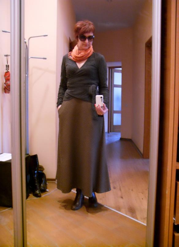 VeraPravda Опубликовано 17 апреля, 2011 Поделиться #74 Опубликовано 17 апреля, 2011 (изменено) Вот мой опыт с макси. Эта юбка досталась мне в лихие начальные 90-года ( секенд) из Финляндии. Такая на ней чудная шерстяная ткань и клетка, что дорожу я этой юбкой и храню ее. Так как макси пояаилось в арсеналах моделей я тоже достала ее из хранения. Права Брина дресскод такое не пропускает, в институт на лекции я не хожу (возраст другой), а просто для себя пройтись "в образе"-мне нравится. Зимой с теплой курткой, кажется это стиль 80. Или с короткой курткой и с коротким кардиганом. Пробовала верх объемный-но сразу лишняя тяжесть на фигуре. Очки, так как без макияжа. Летом носида длинный сарафан, а ярусную юбку с майкой и батистовым шарфом на шее. Было здорово! Рост 168, каблук 9см, а возраст в привате. И еще заметила, что макси возращается в каждом десятилетии, только в новом прочтении: вспомните конец 70-юбка годе-макси с широким низом, в 80 была длина по икру и платья и юбки, в 90 -опять в пол, прямые чуть расширенные юбки (еще с разрезами) носили с ботинками и летом и зимой. Изменено 17 апреля, 2011 пользователем VeraPravda Ссылка на сообщение Поделиться на другие сайты Поделиться