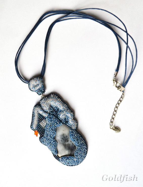 Как-то упустила и не показала здесь ещё одну красоту от Goldfish - колье "В городе дождь" - использованы агаты, горный хрусталь, кристаллы Сваровски, натуральная кожа.