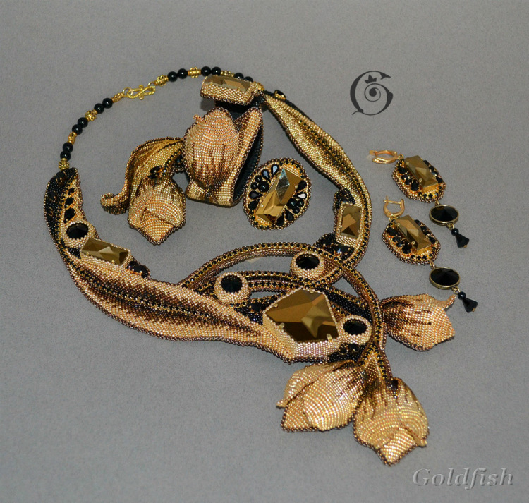 И теперь ещё совершенно потрясающий комплект L'elisir d'amore из коллекции "Музыка из бисера" , выполненный в стиле Art Nouveau