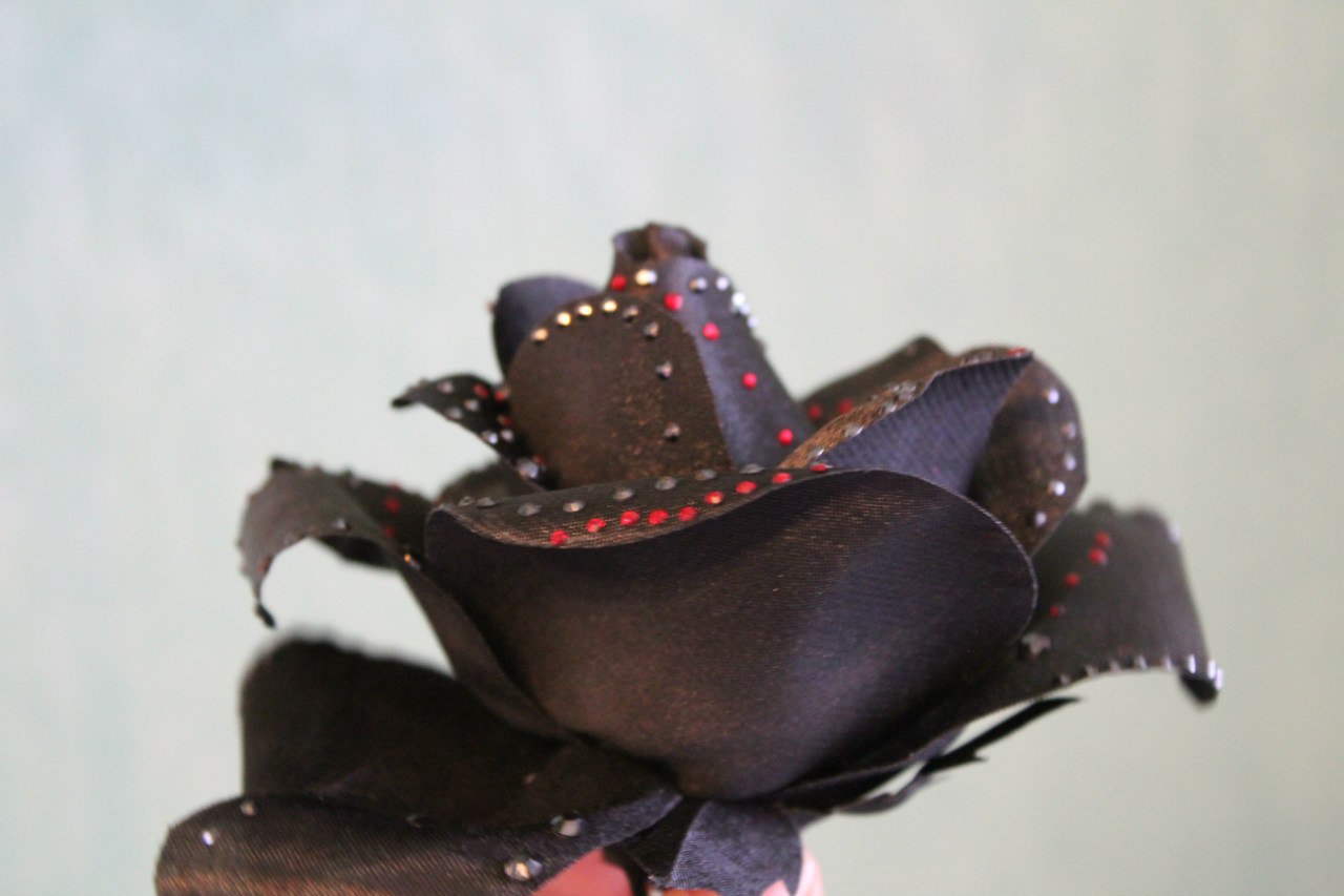 Иванна Опубликовано 26 июня, 2012 Поделиться #512 Опубликовано 26 июня, 2012 Большое, спасибо за подсказки. Действительно было бы интереснее, если бы роза была не одноцветная.. Но, если честно, это вообще мой первый цветок из ткани. Моя заказчица - девочка, поющая на сцене. И она готовила для конкурса песню Уитни Хьюстон из фильма "Телохранитель". И возникла идея сделать простое трикотажное платье, украшенное большой чёрной розой. Чёрная роза, теряющая лепестки. Конкурс был спустя совсем небольшое время после ухода из жизни Уитни. И хотелось подчеркнуть печаль... Да и девочка моя чернокожая. Сочетание получилось ярким. Камнями расклеила, чтоб со сцены роза "горела" в свете софитов. Инструментов у меня пока что нет. Я для буления использовала металлическую ложечку для вырезания шариков из арбуза и дыни))))))) Грела её над свечой и ... Правда с цветком не чёрного цвета такой номер не пройдёт))))) Сажа.Восхищаюсь и вдохновляюсь Вашими цветами)))))Они очень нежные и красивые)))))) Ссылка на сообщение Поделиться на другие сайты Поделиться