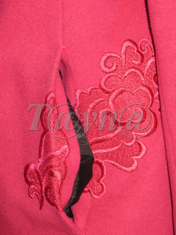 Будет комплект: жакет с вышитым воротником и платье. Жакет из гладкой ткани, а платье из узорчатой. Ткань платья присутствует в цветке , это основной - первый ряд. На воротнике помимо вышивки планируются складки или защипы, поэтому оставлены пустоты.