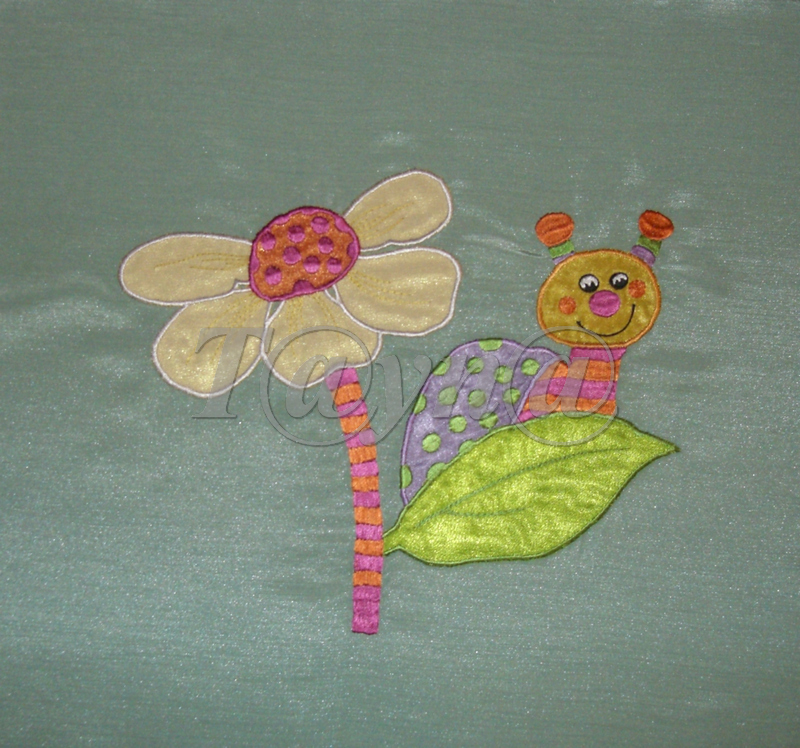 я понимаю, что здесь используется еще и аппликация. как она крепится? предварительно укрепляли? и ткани какие ?
