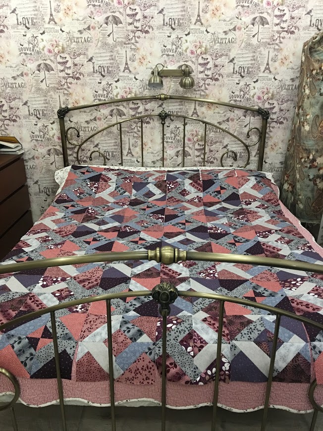 Женя там упомянула про финал небольшой работы,которой я занималась последние 3 недели. Это большое покрывало пэчворк, это первая моя проба пера в таком жанре,и сразу я замахнулась на такой большой формат 2.20 на 2.40. Сейчас сделаю итоговые фото и покажу,что у меня получилось. Очень захватывающий процесс,я вам скажу)))