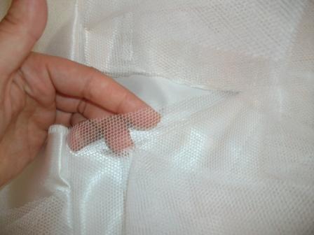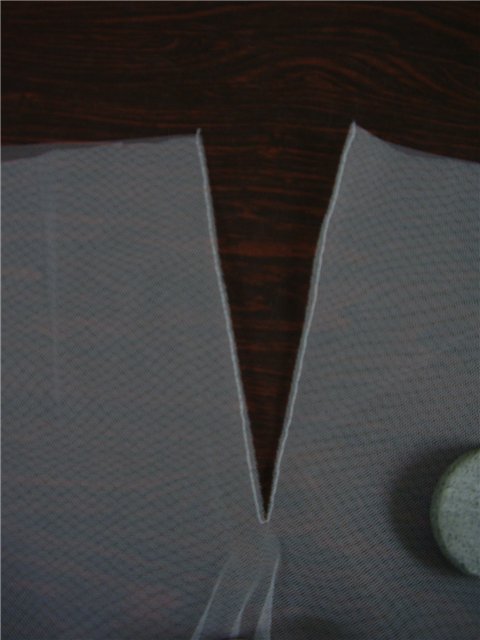 Для обработки нужно взять лоскут фатина ( в больших многослойных юбках разрезы обрабатываются нижним слоем юбки)