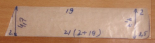 Клапан одинаковой высоты по всей длине, но когда его вшиваешь в боковой шов, то по косой он немного вытягивается.