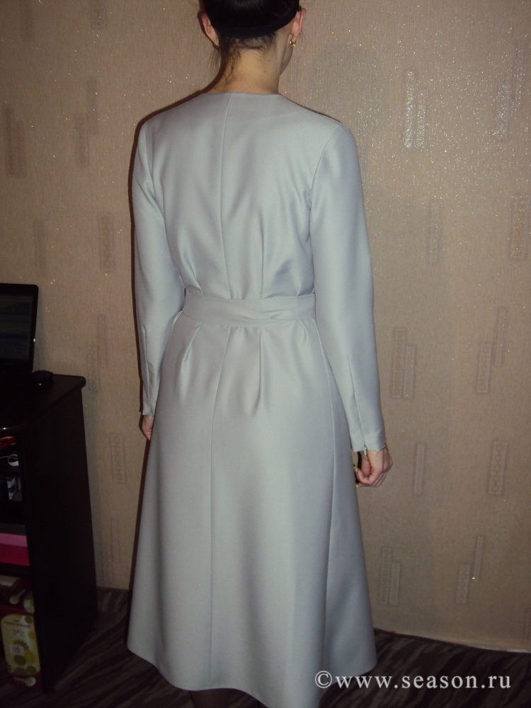Пуговичное варенье Опубликовано 12 апреля, 2012 Автор Поделиться #285 Опубликовано 12 апреля, 2012 Платье из БМ 10-2011Планируется носить его и с туфлями на каблуках, и с ботинками нарочито грубыми (или с «казаками»). Эдакая городская «штучка».. Почему-то для эпитетов у меня не находится слов, похоже, затея с городской «штучкой» не очень удалась. ) Значит, пройдусь по техническим нюансам.Итак, эта та же заказчица с фигурой «гитара», как я про себя называю (ну, никак не видится тип «груша» ввиду стройности девушки): Ог 42 размера, Об – 46-го. Фасон платья в плане посадки сложноват – бедра натягивают ткань, хотя необходимую коррекцию выкройки сделала. По среднему шву спинки в области талии убирала в процессе примерок (А-силуэт юбки стал Уже, более собранным что ли..), откорректировала длину (6 см в минус) – при росте 172 предложенная журналом длина придавала платью монуметальности, динамичность модели куда-то исчезала. Скруглила подол впереди, убрав уголок – переход от волана: волан тяжелый, сильно тянул вниз. Свобода лифа ниже груди обеспечивается не застроченными до конца вытачками, спереди мне нравится, по спинке – не очень. ) Пройма по спинке тоже подверглась небольшой коррекции. Рукава с потайными молниями, переходящими в вытачки. Ткань (плательная, без стрейча) плохо поддавалась сутюживанию, - в одном месте сутюживаю, в другом появляется волна. Пока не догадалась положить махровое полотенце выше места сутюживания. Сразу же дело пошло веселее. ) Из недочетов отмечаю молнии. Вероятно, я неправильно их пришиваю: от верхнего среза к основанию молнии. Образуются плохо сутюживающиеся наплывы, создающие общее впечатление неаккуратности. Ну, и под вопросом осталась подгибка подола: в двойную подгибку получалось толсто, поэтому обработала оберлоком край и подогнула на ширину оверлочной строчки+1мм. Отстрочила нитками «сильно в тон», как выразилась Строчка. )Не знаю, насколько я была права по поводу длины изделия и уголка. А вы как думаете? Хотелось бы услышать ваше мнение.. )Извините за сопутствующий антураж комнаты, ФШ не захотел установиться, пришлось по-быстрому установить такие фото. Каждый рождён шелкопрядом и прядёт свою тонкую нить..:) Ссылка на сообщение Поделиться на другие сайты Поделиться