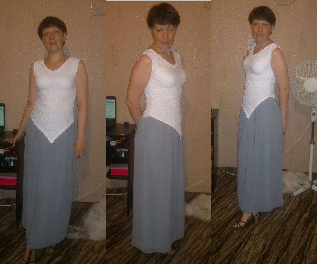 Пуговичное варенье Опубликовано 29 июня, 2012 Автор Поделиться #401 Опубликовано 29 июня, 2012 Дааа.. Нелёгкая была неделька.. Но через три дня в отпуск! :))Приветствую.:) Сегодня я с тремя вещицами. Не могу быть уверенной, что они покорят ваше сердце )), но они стоили мне огромного терпения и выносливости в 33 град.жары.:)Расскажу по нарастающей степени "нравится-не нравится" или "моё-не моё". Первой была юбка из шифона. Почему-то дочь сказала, что ей нравится, как она на мне, я же не очень приветствую "прямоугольник на резиночке".. Ну, не совсем прямоугольник, канешшна, так, трапеция, но резиночка в 4см присутствует.)) Потом был топ. Из недешевого трикотажа, с эффектом жатки за счет.. резиночек))), они как бы впаяны в ткань горизонтальными полосами. Отрез был небольшой, 70см при 120-сантиметровой ширине. Кроить горизонтально? Банально. К тому же одна банальность уже есть.;) Рискнула по косой. Уголок по подолу - насколько хватило ширины отреза, была бы больше, сделала бы его более очевидным. Обрабатывала горловину буквально остатками, на проймы уже пошла трикотажная беечка.Сегодня его выгуляла с брючками.. Не ожидала столько заинтересованных взглядов и комплиментов.. Правда-правда.))А утешительным призом стала рубашка изо льна с люрексом. Скажу честно: я её люблю! :) Шилось, как пелось, выкройка чудесная, приталивать не стала, от пояса в итоге отказалась под напором дочери.)) Через три дня ещё испытания: преодолеть кучу километров за 8 часов беспосадочного лёту, 11 часов ожидания рейса в Домодедово, ещё один коротюсенький перелет.. Но мне чувствуется, что всё сложится хорошо. Чего, собсно, и вам.:) До встречи. :) Каждый рождён шелкопрядом и прядёт свою тонкую нить..:) Ссылка на сообщение Поделиться на другие сайты Поделиться