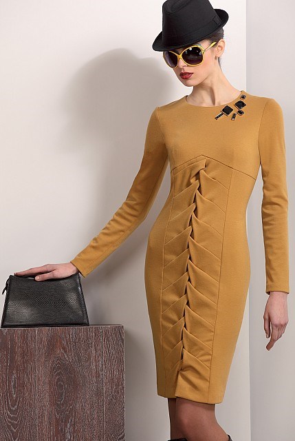А платье у нас уж точно весеннее и радостное. Идею взяли у белорусского бренда Noche Mio Но не стали делать полуприлегающий силуэт, потому что визуально хотелось подчеркнуть талию и увеличить бёдра. Юбка со складками, центральную вставку с вафельками подняла выше до вершин вытачек, её как то не хватало, маловато было :-) Платье из синтетического трикотажа. На фигуре смотрится потрясно и очень стройнит. Фоток пока нет, если пришлют сразу выставлю, а пока нет мочи ждать! :-)