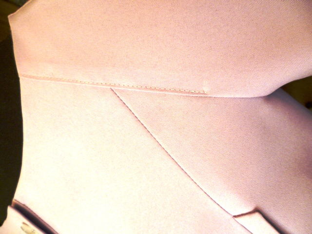 iskushenie Опубликовано 25 апреля, 2012 Автор Поделиться #259 Опубликовано 25 апреля, 2012 (изменено) Дамы ,приветствую!Вдогонку "Перу синей птицы"-жакетик цвета йогурта с черникой)))Без подкладки-потомушо-Лето!И тут вступают косые бейки на изнанке-у меня их целых два вида-как будто так и надо))На самом деле-хлопковая-точно в цвет ткани широковата для швов в разутюжку-и она легла по карманам .подбортам и подгибке рукавов.Вторая-обычная-расположлась по остальным припускам.Ткань-ненатур. габардин.Флизелин тончайший в подбортах и листочках. Подгиб пришила ручками-потайной шов прокалывая все слои.Отстрочила по пройме и верхнему шву рукава-габардин то не особо ВТО-шится по криволинейным швам)))Букоффки свои вышила шелком мелкииим стебельчатым ли петельным?) швом. вот так не видно шва подгибки с лица...ну-практически)) Изменено 25 апреля, 2012 пользователем iskushenie "С помощью моих произведений я хотел бы распространять счастье!" Альфонс ДодеМеня зовут Елена))Мой магазин Ссылка на сообщение Поделиться на другие сайты Поделиться