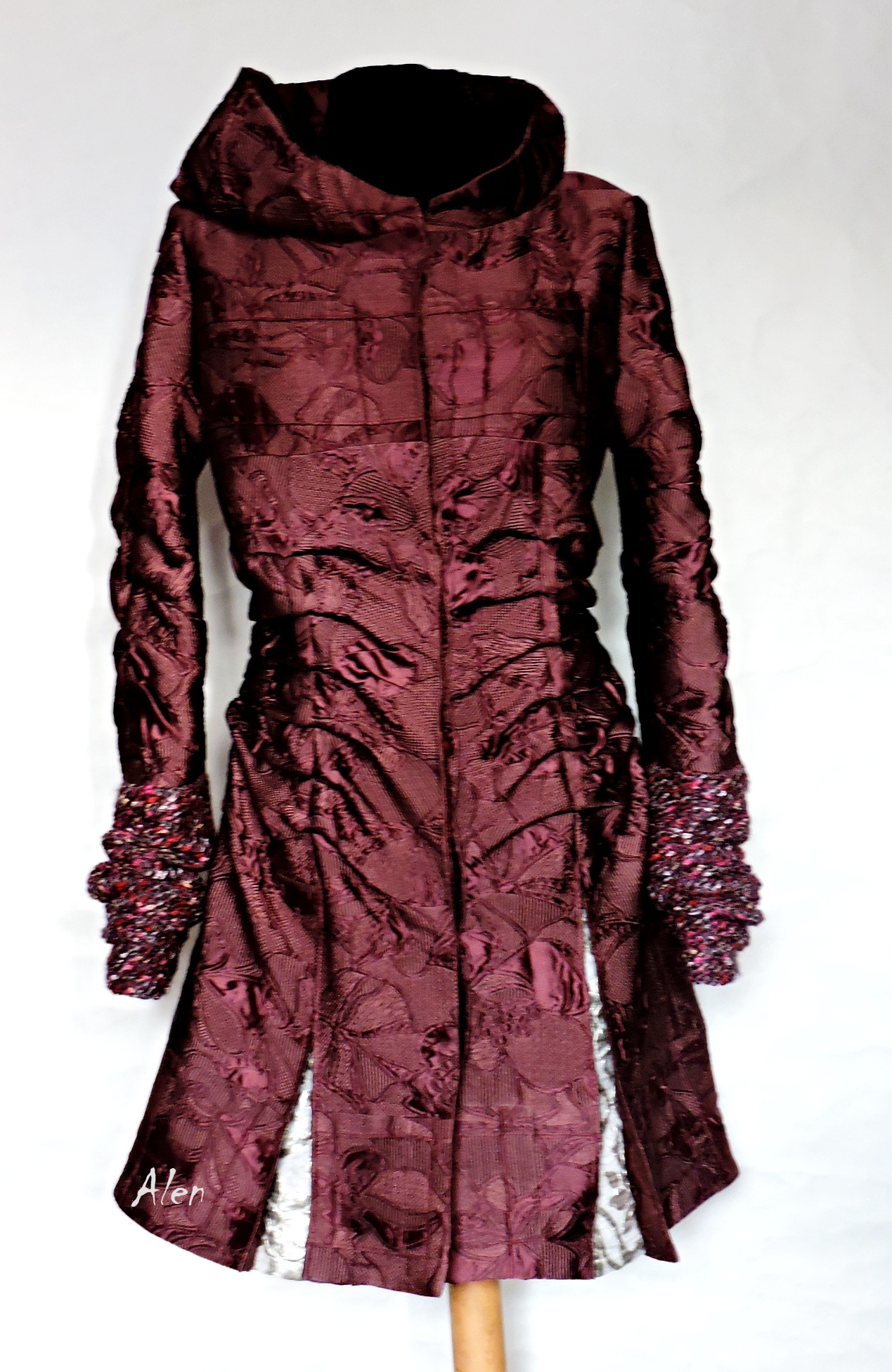 iskushenie Опубликовано 26 сентября, 2019 Автор Поделиться #4025 Опубликовано 26 сентября, 2019 (изменено) в рельефные швы полочек и в верхние швы рукавов вшиты оборки,потом закладывались складки,их внутренние сгибы зафиксированы на репсовой ленте с изнанки.По воротнику складки по три штучку группами.Манжеты из букле выкраивались длинные,пришив к ним рукав из подкладочной(он нужной длины) получаем сборку манжета. Фото смазано(сорри)-но вот так выглядит парча в складках Изменено 26 сентября, 2019 пользователем iskushenie "С помощью моих произведений я хотел бы распространять счастье!" Альфонс ДодеМеня зовут Елена))Мой магазин Ссылка на сообщение Поделиться на другие сайты Поделиться