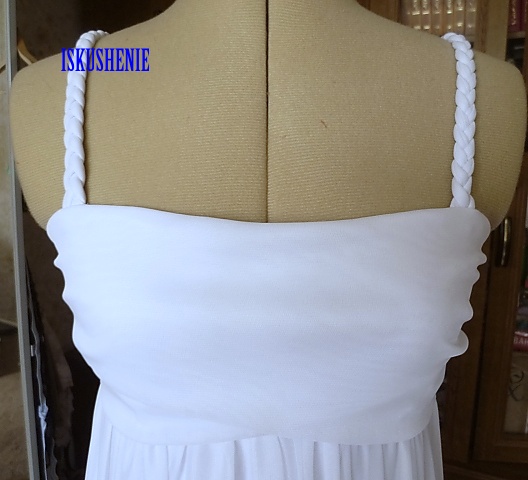 iskushenie Опубликовано 3 июля, 2012 Автор Поделиться #549 Опубликовано 3 июля, 2012 (изменено) Всем дорогим моим сезоночкам привет!У меня срочное(сначала не хотели вообще) скромное свадебное платье в подарок на невесту в положении-дочке подруги.Нижний слой трикотажное полотно,верхний-трикотажная сетка.Лиф три слоя,сетка драпированная на переде две детали двухслойные наложены друг на друга,сзади сетка в дин слой-плюс основа из трикотажа.по верхнему срезу обтачано трикотажной деталью .Юбка трикотажная полусолнце,верхняя солнце в сборку.По припуску по грудью резинка.по верху декольте-широкая резинка-пришита к припускам.Сейчас еще болеро из сетки изобретаю-не знаю пока .что выйдет))Лямки-коса из руликов(сетка +трикотаж)Сзади(3-е фото)еще не пришиты-бум регулировать) Изменено 3 июля, 2012 пользователем iskushenie "С помощью моих произведений я хотел бы распространять счастье!" Альфонс ДодеМеня зовут Елена))Мой магазин Ссылка на сообщение Поделиться на другие сайты Поделиться