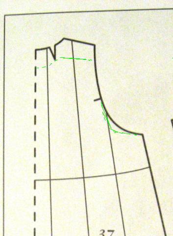 1)Подняла бы плечо на 2,5 см(вследствии чего и рукав станет короче)