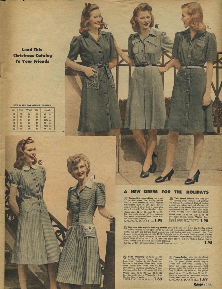 Александринка Опубликовано 3 января, 2013 Поделиться #394 Опубликовано 3 января, 2013 #383Цветная страничка каталога 1942 года выпуска, цветная!!! А платья - серые. И при моделях подписано, что цвет можно заказать серый, черный, а также темно-синий (морской синий), темно-зеленый и темный бордо. Все цвета - цвета промышленно окрашиваемых тканей для военных нужд. Даже для ткани с рисунком цветочки напечатаны на сером фоне. Все для фронта, все для победы, даже мануфактура. И - новые выкройки, для нового женского образа. С военными кармашками, морским воротничком. Ссылка на сообщение Поделиться на другие сайты Поделиться
