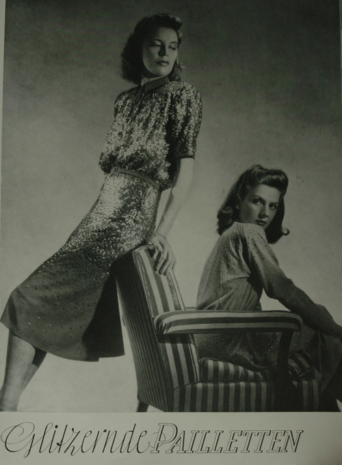 FashionFan Опубликовано 3 апреля, 2013 Поделиться #514 Опубликовано 3 апреля, 2013 (изменено) капельКО, я вижу на картинке вечернее платье, с приталенным лифом и воротником,оформленным типа "хомутика". На платье Omotja, я вижу вырез горловины по типу "лодочки" + "качелька". А этого в 40-х не было.... А вот ткани с пайетками были и предназначались как раз для платьев для посещения театра и концертов и длина платья не должна была быть обязательно в пол, хотя была более распространенная.Вот фото из журнала за 1942 год с такими платьями. Изменено 3 апреля, 2013 пользователем FashionFan Ссылка на сообщение Поделиться на другие сайты Поделиться