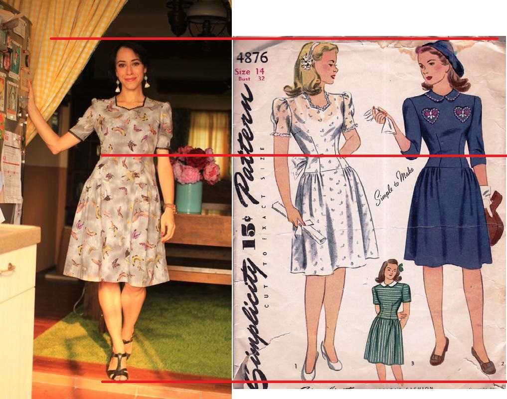 lititia Опубликовано 9 октября, 2014 Поделиться #651 Опубликовано 9 октября, 2014 camille, спасибо. Собственно, так и хожу: быстро, почти бегаю. :) Поношу его чуть-чуть и если не привыкну, то сделаю юбку поуже. Мне сегодня сделали аж ОДИН комплимент по поводу платья! :) А обычно вообще не замечают никакую одежду - т.к. одни хмурые инженеры работают, да и не принято. Еще по поводу пошива: Шила по выкройке Симплисити, на ней стоит дата 1943г, но состояние отличное. До меня ее уже шили – невысокая девушка с пухлыми ручками – остались поржавевшие булавочки там, где выкройку меняли. Выкройка непечатная – т.е. просто листы папиросной бумаги с перфорированными дырочками. Поначалу меня это пугало, но оказалось, что ничего страшного нет. Припуски везде по 1см, кроме боковых швов, там 2м. Я сразу же обвела все линии и вытачки карандашом, а дальше уже работала как с обычной выкройкой. Модель очень простая, сложностей не возникло. Очень интересно было сравнить с моей выкройкой основы. Оригинальная выкройка на обхват груди 81см и талию в 67см (это подростковый размер). При этом ширина выкройки в груди 98см! 17см на СО!!! (это без припусков) А в талии всего лишь 68, т.е. +1см. Линия бока при этом не ровная, а чуть выгнута наружу к груди, типа рюмочки. Выкройку конечно подгоняла, в длину, и в ширину и вообще везде, но постаралась сохранить пропорции , только в груди у меня получился припуск на СО - 11см, а в талии – 2см. И то боялась, что будет много, надо будет в проймах ушивать. На удивление – не пришлось! Конечно в груди немного непривычно широко, но иначе бы я руки не могла поднять, т.к. рукава очень узенькие (не удивительно, что их до меня расширяли на 5см). Подплечники делала сама. Смешно получилось. Начала с размера указанного в выкройке – треугольник со стороной 15см и толщиной в самом широком месте 2см. А потом я его меряла-меряла, чикала-чикала, пока не остался рулик в 2 см шириной. :) Так и узнала, что плечи у меня ровные и достаточно широкие. После того как приметала рукава еще уменьшала плечо на 1.5см, иначе очень уж были широченные. Молнию вшивала вручную. По инструкции платье застегивается на крючечки в боковом шве. Бурлакова Фрося, да возможно не хватает высоты прически. Тут еще на темном фоне, волос вообще не видно. В принципе не было цели, чтоб выглядело точь-в-точь как в 40х гг, главное чтоб красиво было. :) Но шляпку я точно носить не буду и волосы мне так не уложить. Есть идея заузить юбку, тогда силуэт будет похож на 90е, типа такого: Хотя этот стиль более мадамистый. Мне стиль бегающей девочки ближе. ЮляОдесса-Сингапур-КалгариМой инстаграм Ссылка на сообщение Поделиться на другие сайты Поделиться
