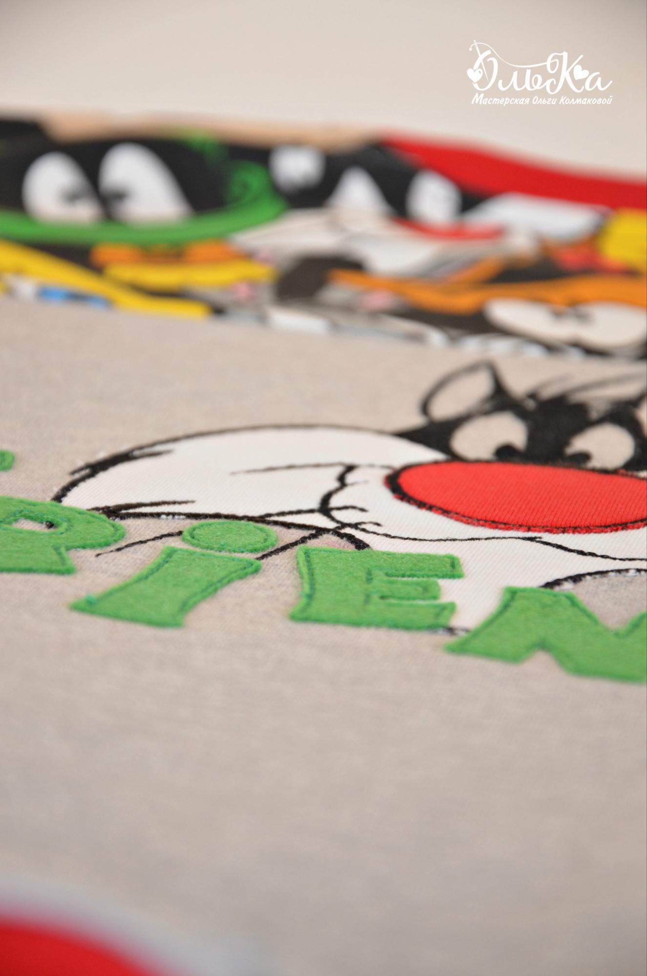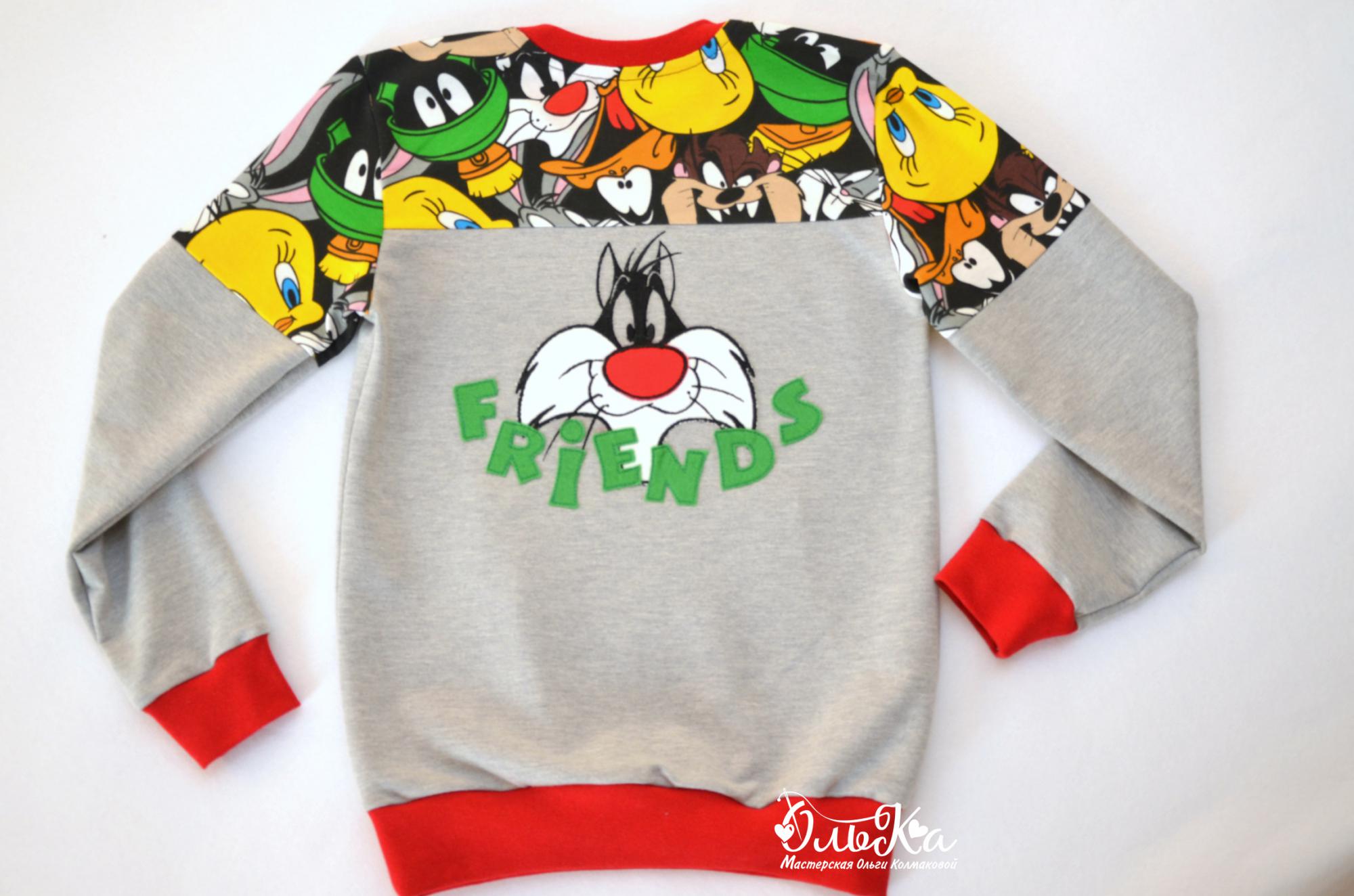 Мультяшная толстовочка очень интересная получилась. Кот там хорошо прижился:).