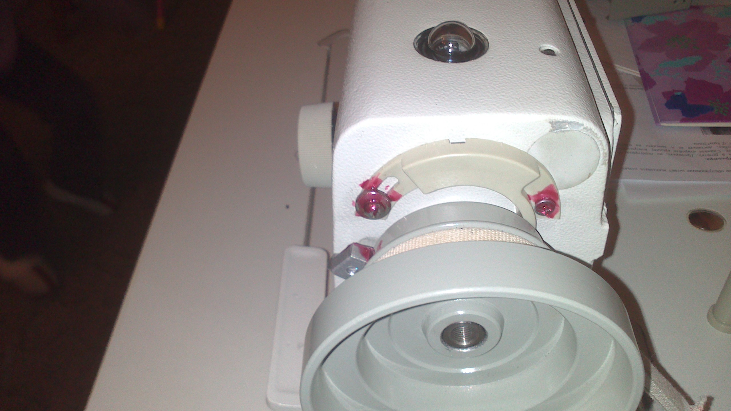 Анжел Опубликовано 1 ноября, 2012 Поделиться #50 Опубликовано 1 ноября, 2012 Может быть эти фото Вам помогут. Позиционер иглы без пластмассового датчика, который надо крепить непосредственно к корпусу машины. Переходник( металлический маленький цилиндр) прикручивается к маховому колесу новым болтом ( есть в комплекте к мотору ) . Затем вручную выставляется положение иглы, и закрепляете сам позиционер иглы шестигранными винтами ( видно на фото).Уже больше полугода машина работает с таким двигателем, я очень довольна. Включаю в начале рабочего дня и практически до окончания работы не выключаю. Настроила так, что позиция иглы при окончании работы мотора всегда в верхнем положении ( можно запрограммировать и в нижнее положение). Так же можно изменить настройку на нижнее положение иглы ( в инструкции написано как изменить программу) , но я этого не делала. Скорость работы двигателя по умолчанию 49.Я ее не меняла. Меня устраивает такая скорость. Нет лучшего учителя, чем личный опыт.Берёт дорого, но преподаёт отлично!!! Ссылка на сообщение Поделиться на другие сайты Поделиться