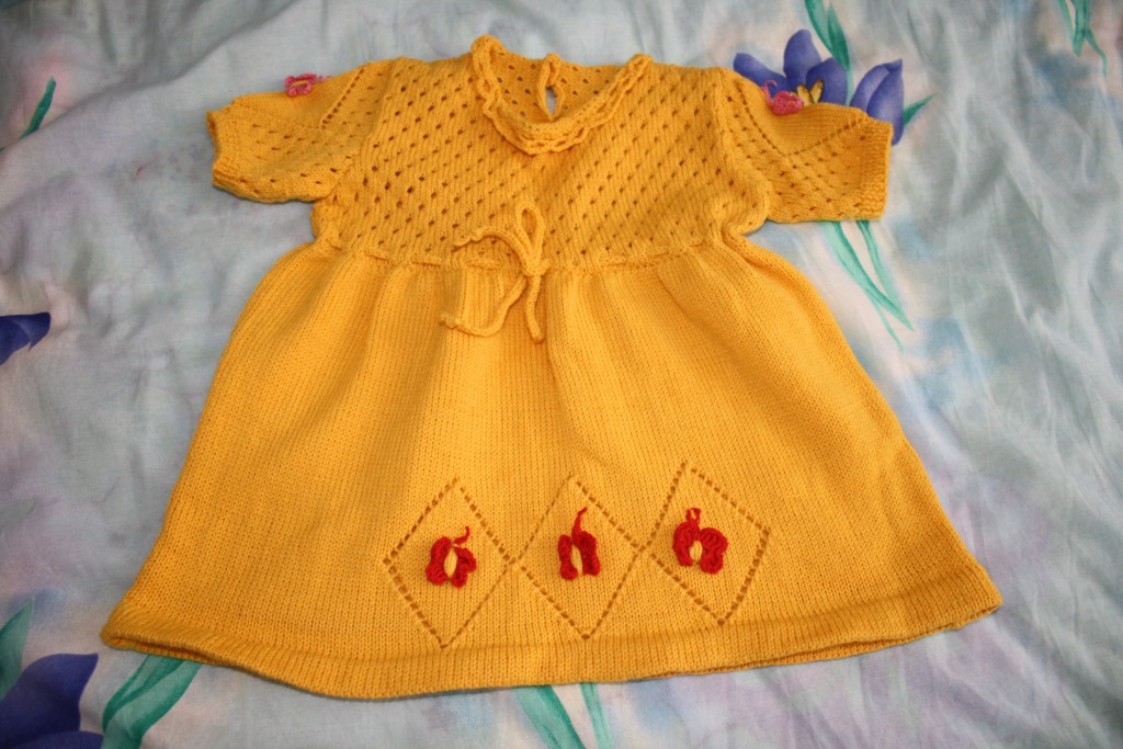 camille Опубликовано 24 января, 2011 Поделиться #27 Опубликовано 24 января, 2011 Это мое первое платье связаное на машинке. И первый ажурчик. Мучала долго, перевязывала три раза, т.к. лекалка барахлила. В итоге рассчитала сама и получилось лучше.Внизу тоже накладочка вышла, платье получилось неприлично коротким, довязала "кружавчики". Ссылка на сообщение Поделиться на другие сайты Поделиться