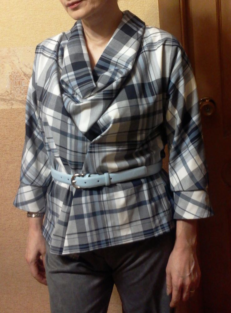 Натоми, хорошенькая вещь какая получилась! Клетка, цвет, драпировка - супер! Расскажи, где швы есть, вижу только один по рукаву (не включая манжеты).. Это ж сколько ткани ушло?
