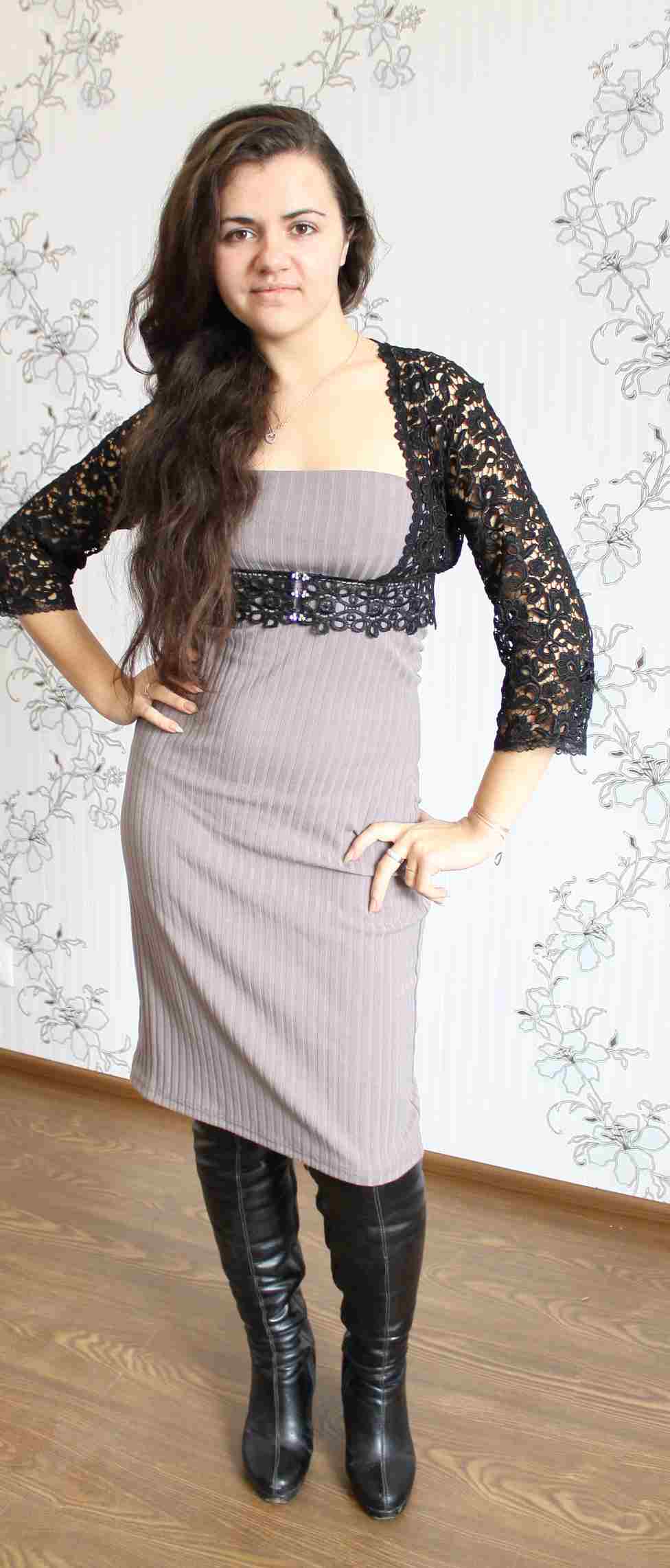 Хочу показать комплект -трикотажный сарафан без бретелей прилегающего силуэта и к сарафану-болеро из кружевной ткани. Ткани был кусочек 40см,при метровой ширине,кроили без выкройки,методом наколки, без плечевого шва,пройму нарисовала прямо на фигуре по ткани мелом,и рукав какой уж получился.Под проймой получилось по боковому шву,и на спине настрочила с запахом.Пришлось добрать поджодящего кружева 80 см ,разрезать вдоль и им обработать срезы на спинке и сделать пояс застегивающийся на крючках.Низ рукавов обработали тонким кружевом.