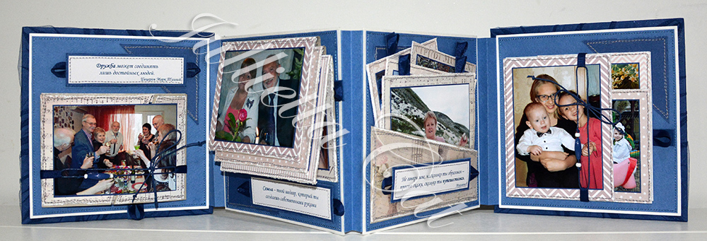 Это фотоальбом-раскладушка, который в открытом виде можно поставить на открытую полку и любоваться им, проходя мимо.