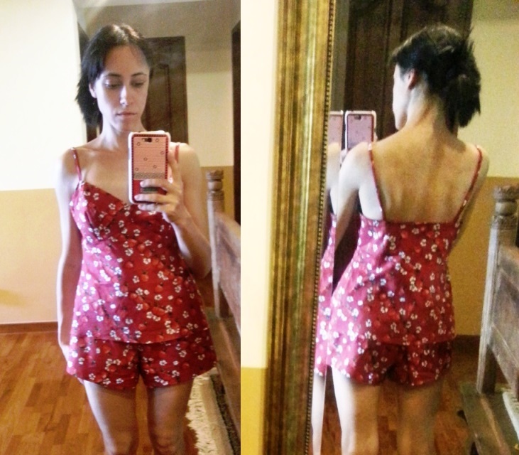 lititia Опубликовано 23 сентября, 2014 Поделиться #851 Опубликовано 23 сентября, 2014 С опозданием в несколько лет, показываю свою комбинашку. Цвет конечно совсем не бельевой, но первую решила шить из того, что было. Шелка был всего метр при ширине 1.10, кружево не растягивается. Выкройка где-то 60х гг, а может и нет, на ней же даты нет. Удивительно, что по выкройке все детали кроятся по косой, но при этом на чашечках по 2 вытачки. И сбоку еще должна была быть змейка, т.е. комбинашка получается очень и очень узкая. Но я делала без змейки, просто решила не уменьшать до своего размера. (выкройка на размер больше). В верхнем шве спинки, к которому крепятся бретельки, сделала кулиску и туда вставила тоненькую резиночку, чтоб спинка не провисала. Хотелось бы подлиннее, но ткани не хватало. От и до шила руками, т.к. боялась, что на машинке не справлюсь с косыми швами. К пошиву подошла со всей серьезностью и даже делала укороченный пробник, зная свою нестандартную фигуру. :) Пробник одет без белья, поэтому чашечки отстают - под них просится конусообразный лифчик, не смотря на то, что уменьшила где-то на пол-размера. Шортики тоже по этой выкройке, тоже по косой, как ни странно - сели отлично, ничего переделывать не пришлось кроме длины - по идее они должны сидеть на талии, но я так не люблю и убрала сверху 10см длины. Теперь сидят на бедрах. Все тоже вручную, ткань - поплин, поэтому это было намного легче, чем с шелком. А вообще оригинальные комбинашки я не застала, а мое знакомство с ними началаось с японских, которые у них называются camisole и их можно носить как под низ, так и сверху, надо чтоб они выглядывали. У меня такая, - обычная хлопоковая, есть рельефные швы, но не облегает нисколько да и не должна в принципе. Сверху и снизу - кружево. Носить их можно так: Тут где-то читала, что комбинашки, скроенные по косой, будут непривычно двигаться под одеждой, но на себе такого не заметила - она вообще невесомая, совсем ее не ощущаю. Ношу и под узкие и под свободные платья. ЮляОдесса-Сингапур-КалгариМой инстаграм Ссылка на сообщение Поделиться на другие сайты Поделиться