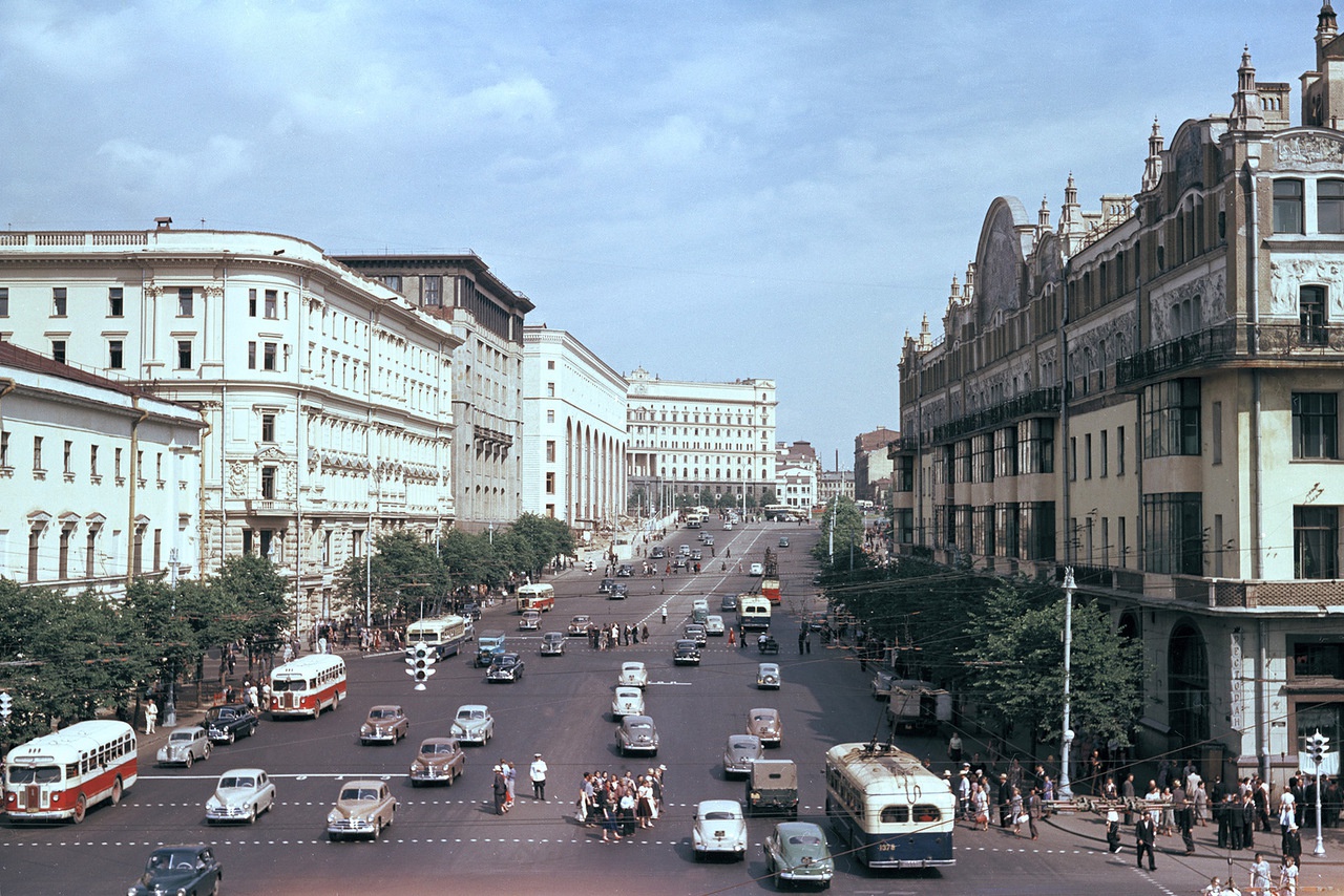 Бурлакова Фрося Опубликовано 19 апреля, 2016 Поделиться #907 Опубликовано 19 апреля, 2016 Вспомнилось... В одном из своих документальных фильмов А. Васильев рассказывает, как советские женщины после войны выходили в свет в трофейных неглиже (они думали, что это вечерние наряды). Да-да.- Вот прямо по этим улицам послевоенной Москвы (см. ниже) и ходили "в трофейных неглиже". На ногах были валенки, летом лапти, а на голове ушанки с тесёмками.Надеюсь, Васильев не забыл это уточнить:). Всегда всех стройней, розовее и вышеРучное шитьё в режиме онлайн Ссылка на сообщение Поделиться на другие сайты Поделиться
